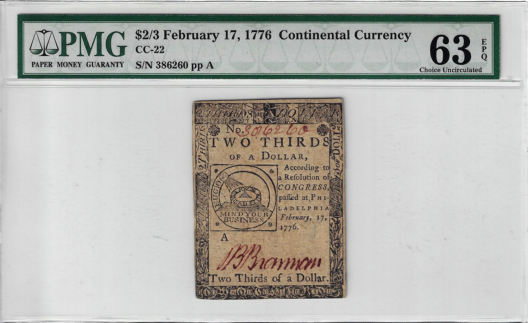 Friedberg CC-22 variety, Serial Number 386260, Plate A. Printed by Hall and Sellers.