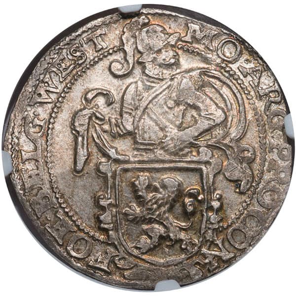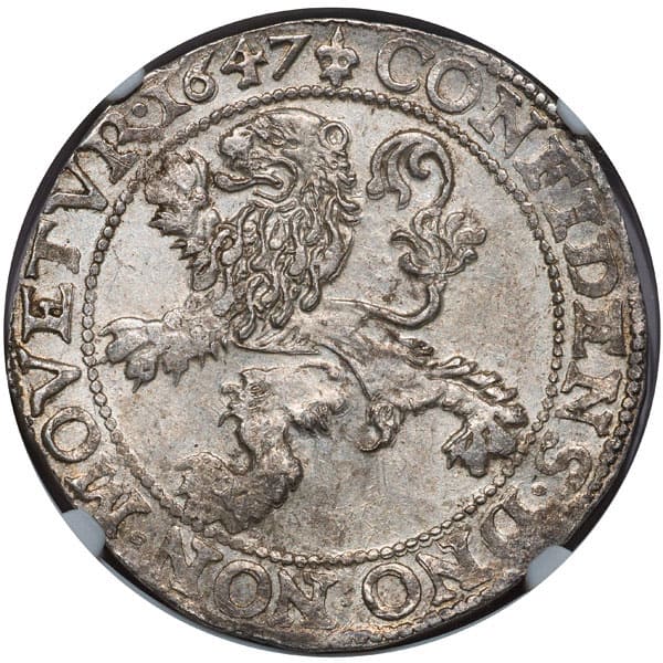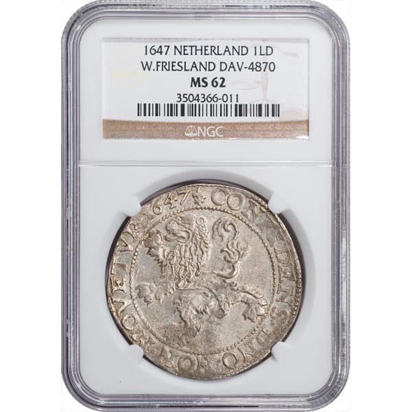 A frosty, evenly struck, delicately toned mint state piece with an unusually bold and well detailed lion for this type.