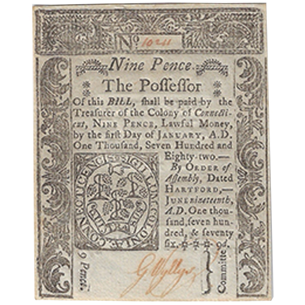 Fr#CT-206 variety, June 19, 1776. Serial #10211.