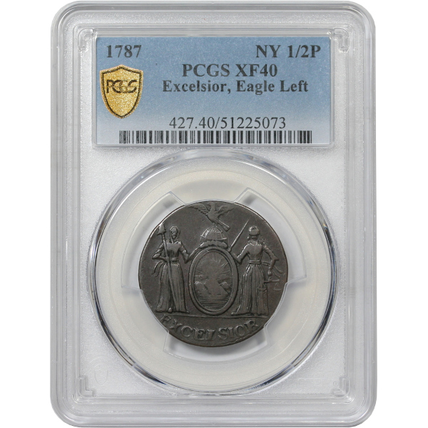 An extremely desirable and rare issue with the distinctive New York Arms obverse and the charming heraldic eagle reverse.