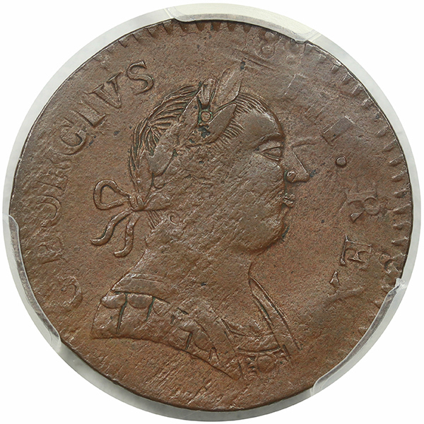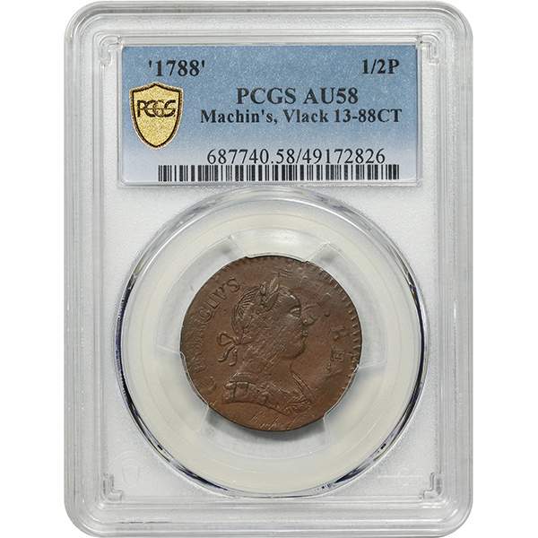 An interesting and crudely made issue which marries a Machin’s Mills obverse with a Connecticut reverse creating a muling in demand by collectors of both series (as well as people who just like cool coins).