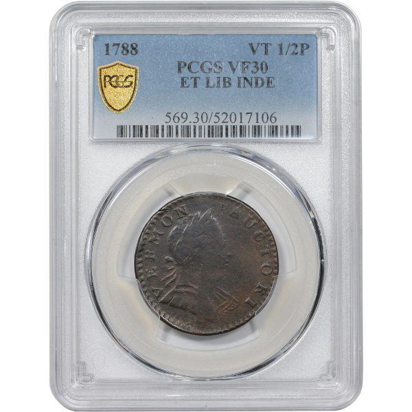 Overstruck on an Irish ½p, with nice medium brown color and better surfaces than we typically see on this issue.