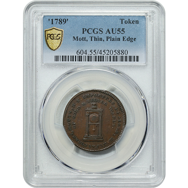 A very pleasing chocolate brown Choice AU early die state with a nice even strike and full legends, the only form of Motts that we ever buy (since the late die states are typically weakly and unevenly struck and thus poorly represent the design the original makers intended).