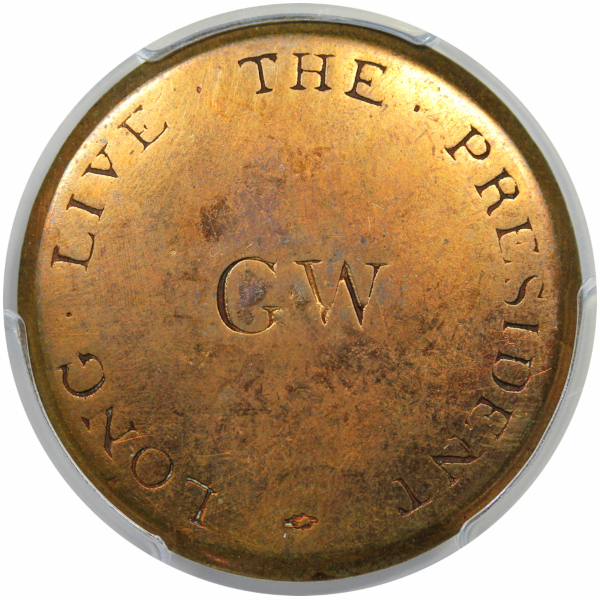 Cobb-11, Albert WI-8, DeWitt-GW 1789-1, Baker-1000 variety, Plain “Roman” GW / LONG LIVE THE PRESIDENT type. Struck in Copper.