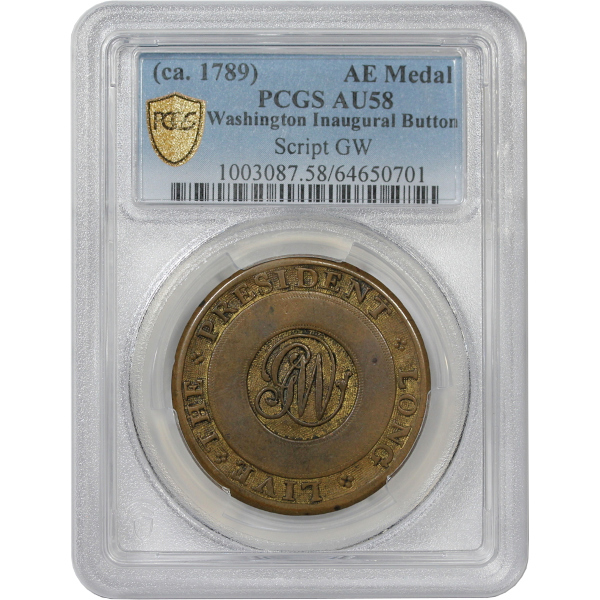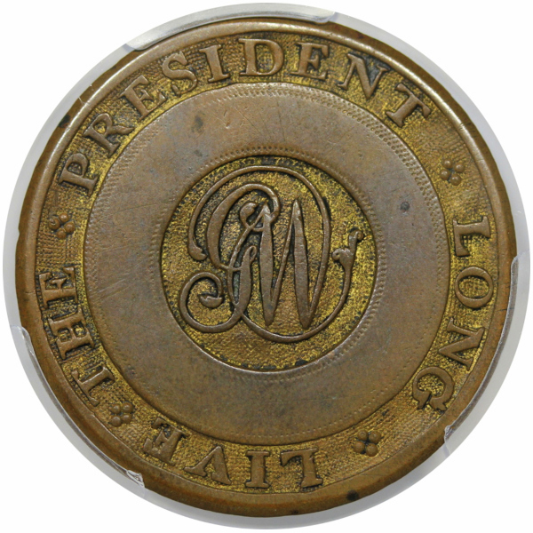 Cobb-Unlisted, DeWitt-1789-2a, Albert WI-10 variety, Plain Script GW / LONG LIVE THE PRESIDENT type. Struck in Brass.