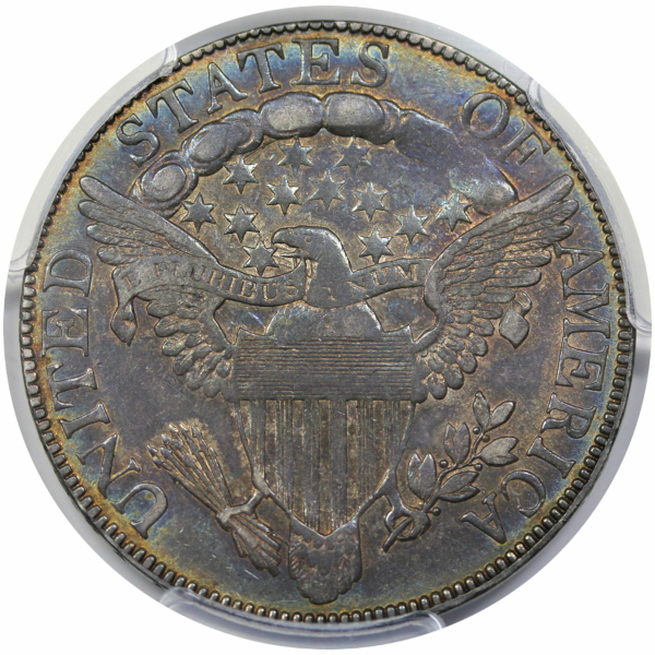 A neat AU example with colorful album toning on the obverse and reverse.