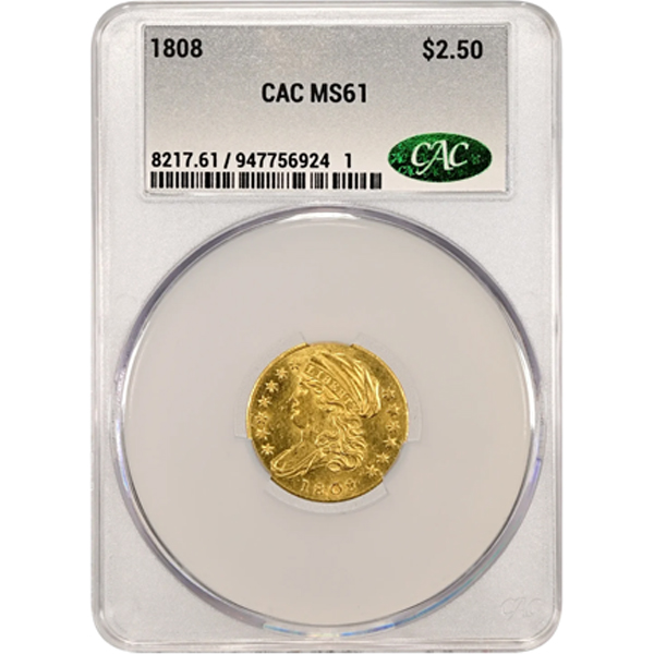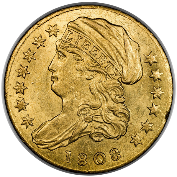 The 1808 quarter eagle was, along with the cent, part of the second group of denominations to receive the Capped Bust Left redesign, after the half dollar and half eagle the prior year. The obverse design would only grace the quarter eagle for this issue, while the reverse design would run largely unchanged through the end of the Liberty Head coinage in 1907.
