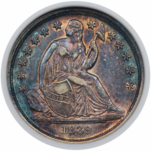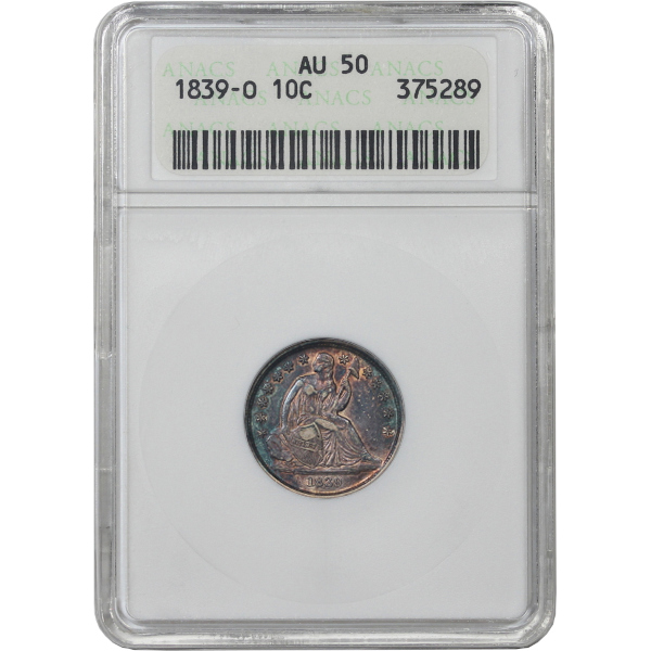 A neatly toned cobalt and golden orange AU exampled housed in a vintage ANACS slab.