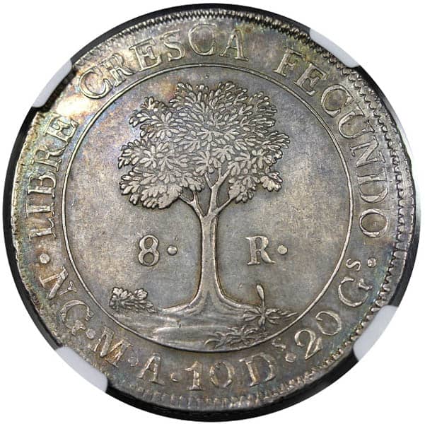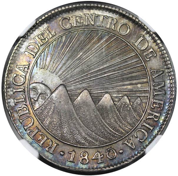 And this is about the nicest AU we’ve ever had of this type, all original, well made, lacking the scuffs and marks so often seen in the obverse rays and surrounding the reverse tree, and beautifully toned in brilliant blue, sea green and gold with dramatic pull-away color at the obverse legends.