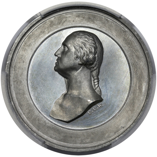 A striking piece, this is a muling of the beautiful C.C. Wright obverse with a reverse bearing the legend NON NOBIS SOLUM SED TOTI MUNDO NATI (which can be translated as Not for Ourselves but for the Whole World we are Born).