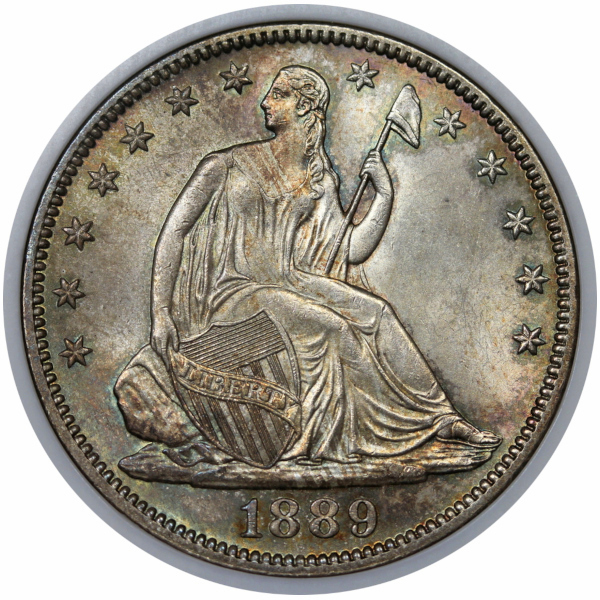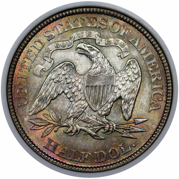 Just acquired by us at a local show, this is a beautiful, original, greenish gray, golden orange and fuchsia toned Choice Mint State example in an old, conservatively graded NGC slab.