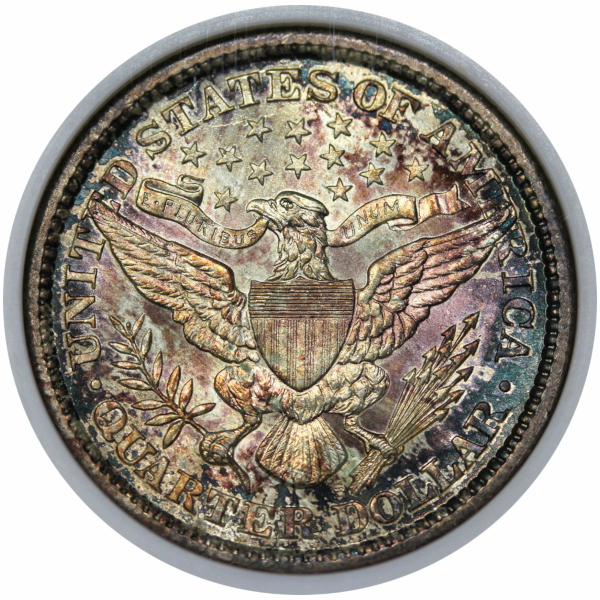 A fantastic, original, colorfully toned piece the likes of which we pretty much only find in old slabs like this, and a coin that looks better than 63 to this author.