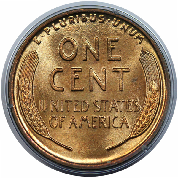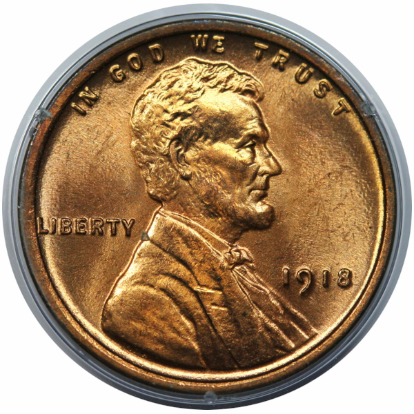 A super fresh, full red, near gem example housed in a circa 1980s PCGS slab.
