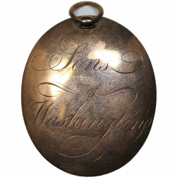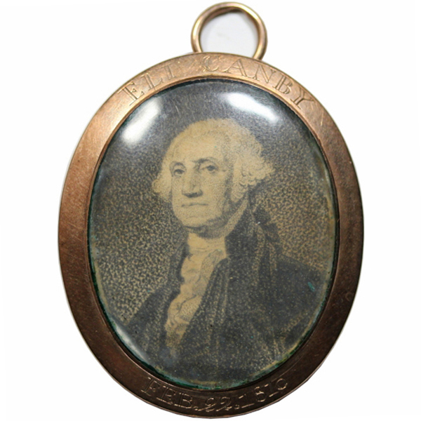 A rare, interesting and historic gold pendant containing a stippled engraving of George Washington under glass, with ELI CANBY inscribed above and FEB. 22, 1810 below. The back has a fancy script “SONS OF WASHINGTON”.