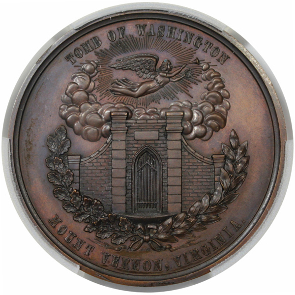 A very high end example of this medal struck by Smith and Hartmann, with lovely surfaces and pretty mahogany and chocolate brown color.