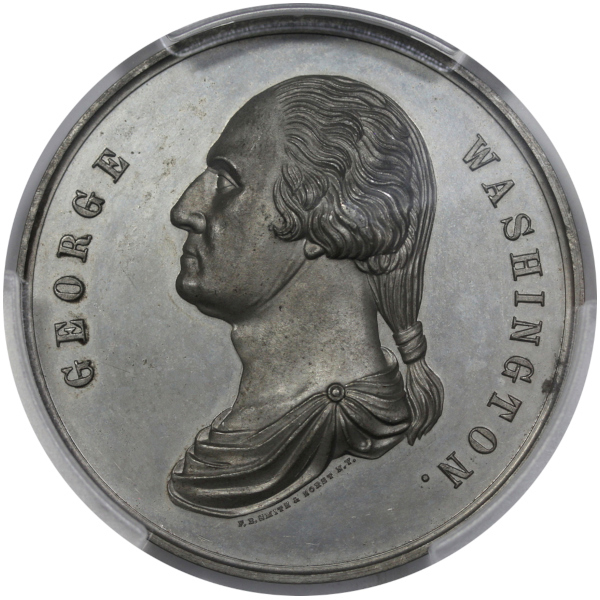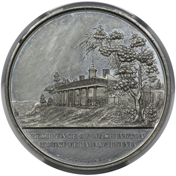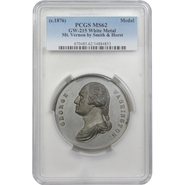 A neat piece with a portrait of Washington on the obverse with F.B. SMITH & HORST N.Y. beneath, and a nice angled scene of Mount Vernon on the reverse.