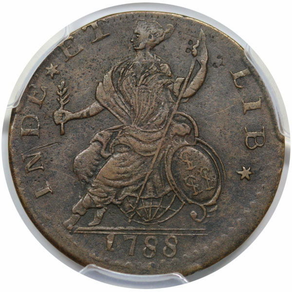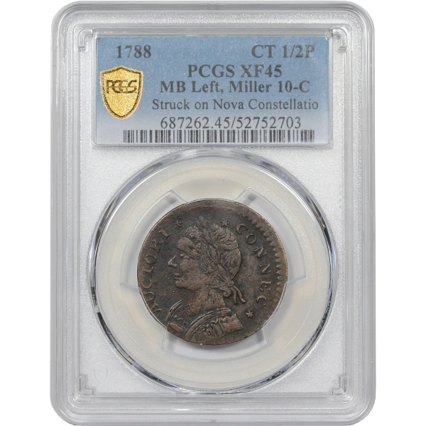 Miller 10-C, W-4505 variety, Mailed Bust Left type. Overstruck on a Nova Constellatio Copper. Considered to be Rarity-5.