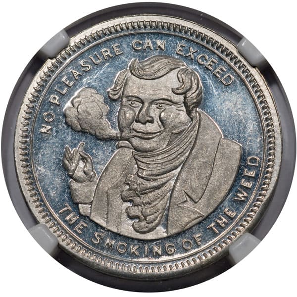 Another of these popular Smoker tokens, this with the same obverse as the preceding, but here mated to the LEVICK 904 BROADWAY reverse.